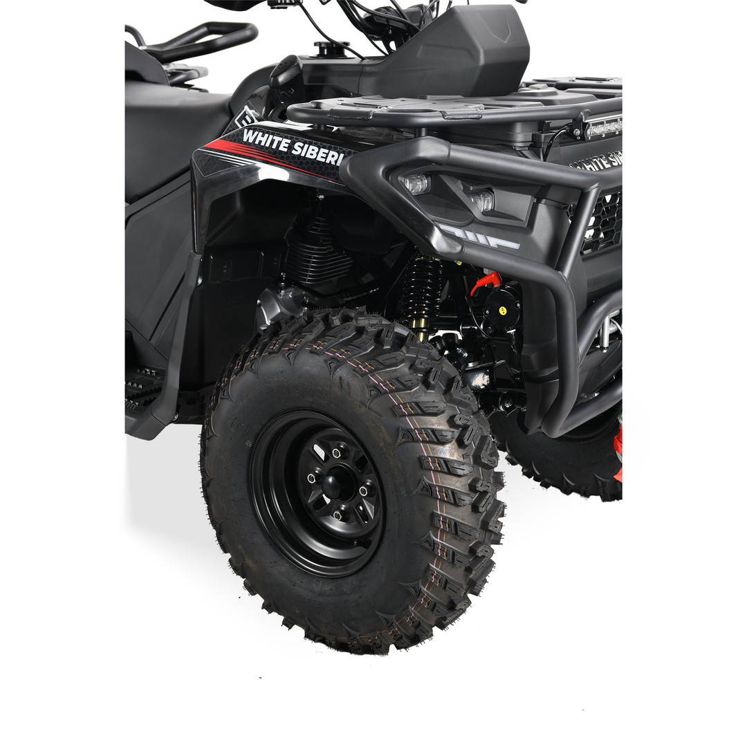 - Внедорожные шины (23×7-10 спереди и 22×10-10 сзади) для уверенного сцепления на грязи, песке и снегу.