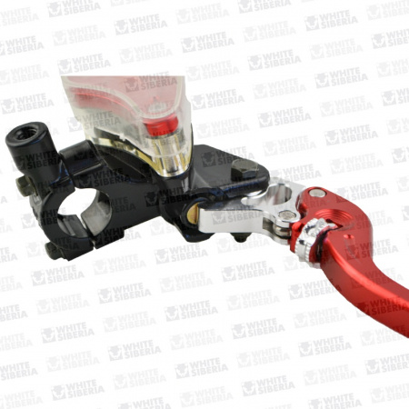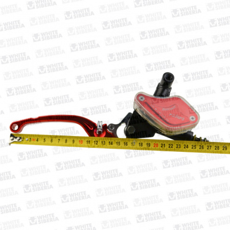 Окрашена в яркий красный цвет, путём анодирования – выдержит поездки по кустам, не будет скалываться при лёгких столкновениях, не выгорает на агрессивном южном солнце, не подвержена окислению и коррозии, не склонна к деформации. Бачок прозрачный – легко контролировать уровень тормозной жидкости. Настраивается положение ручки под разную длину пальцев райдера. Надёжные тормоза – уверенность в вашей безопасности!