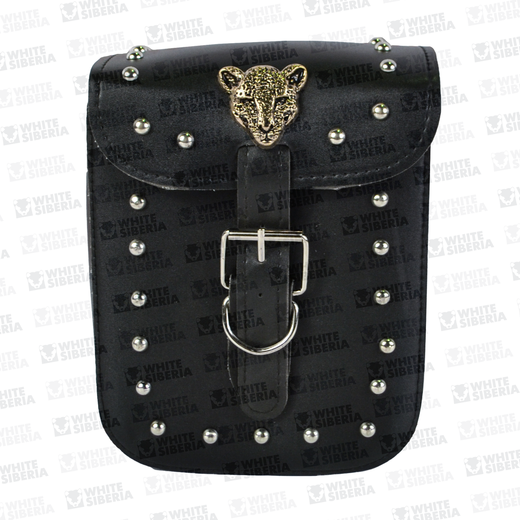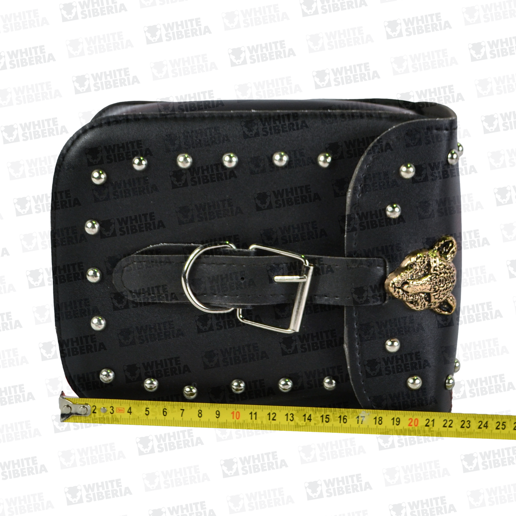 Сумка для скутера – это стильный и практичный аксессуар, разработанный для хранения ручной клади и мелочей в дороге. Изготовлена из плотной ткани и качественного кожзама, изделие отличается прочностью, устойчивостью к износу и погодным условиям. Благодаря оригинальному дизайну с декоративными металлическими заклепками и золотистым узором в виде тигра, сумка становится не только функциональной, но и выразительной деталью внешнего облика байка. Черный фон отлично контрастирует с узором, подчеркивая брутальный стиль владельца.