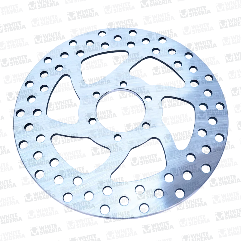 Универсальный тормозной диск, можно установить спереди и сзади. Подойдёт для большинства моделей WHITE SIBERIA. Диаметр диска 167 мм – компактный и лёгкий. Изготовлен из стали, есть перфорация для лучшего очищения тормозной поверхности от пыли и грязи.