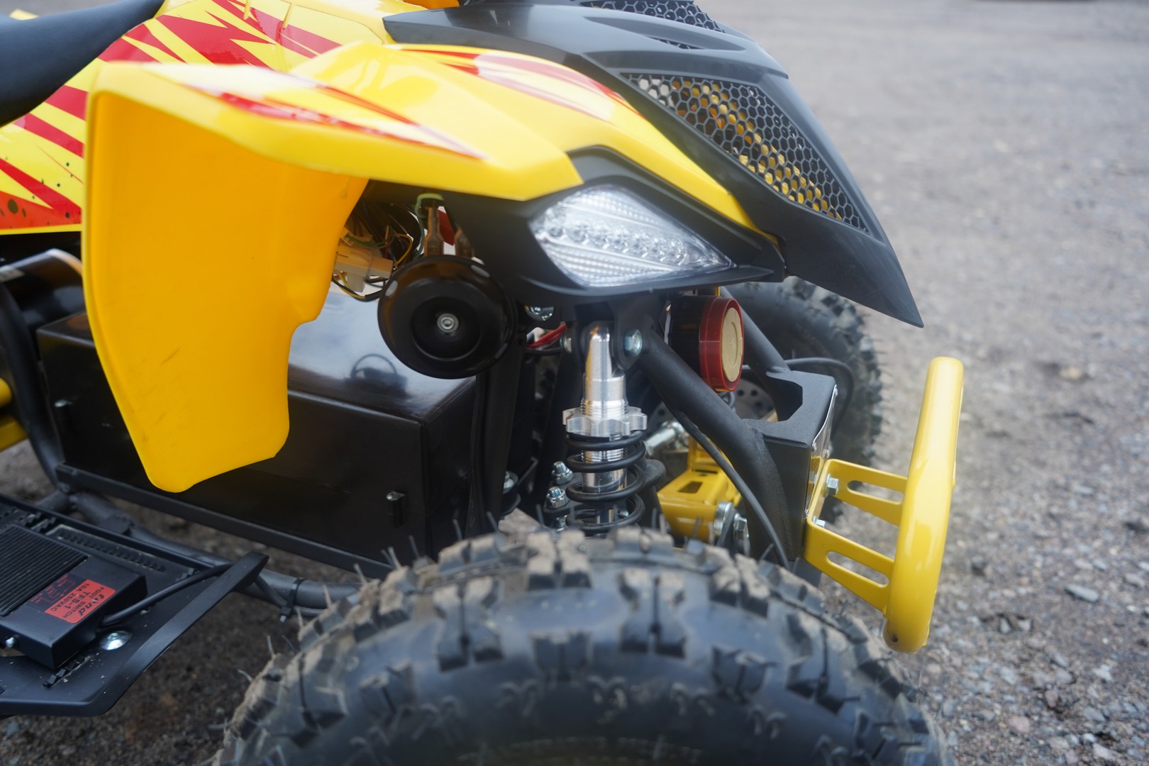 SNEG LETO R YELLOW 1000W — детский электрический квадроцикл, рассчитанный на детей от 3 до 8 лет. Модель комфортна, удобна и проста в управлении благодаря широким возможностям регулировки.