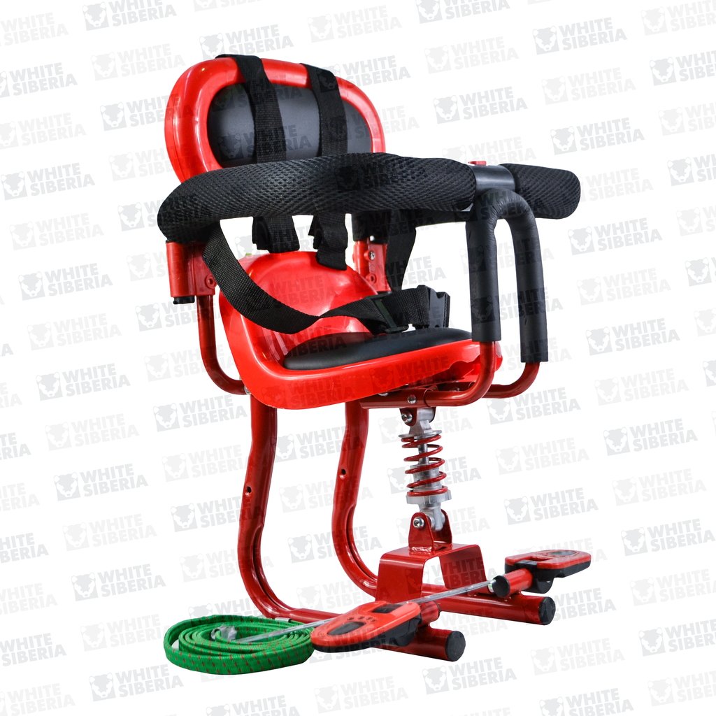 Кресло для детей из пластика на металлической раме легко крепится к полику байка и не требует специальной установки. Модель предназначена для пассажиров весом до 30 кг, вес самого кресла небольшой – 2,5 кг. Конструкция длиной 60 см, шириной 40 см и высотой 30 см включает в себя удобные ремни безопасности, подставку под ноги и мягкие поручни. Встроенный амортизатор делает передвижение ребенка более комфортным. Красный цвет сиденья непременно привлечет внимание малыша.