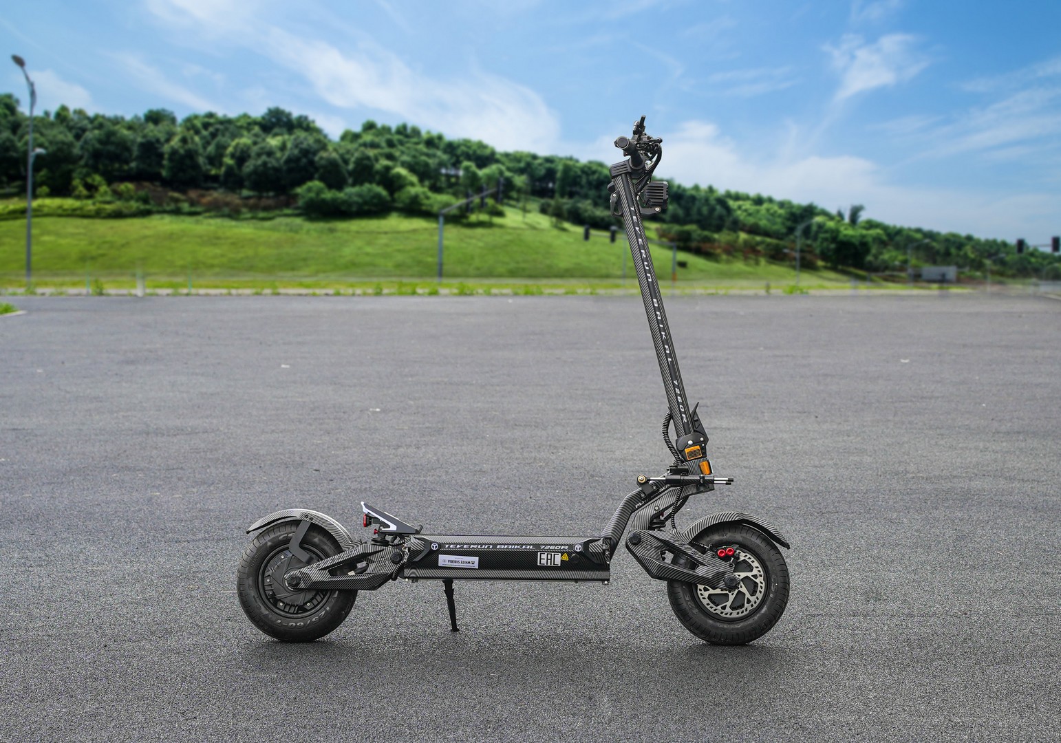 - Максимальная скорость: Около 130 км/ч — высокая скорость делает этот самокат отличным выбором для быстрых передвижений по городу и загородным дорогам.