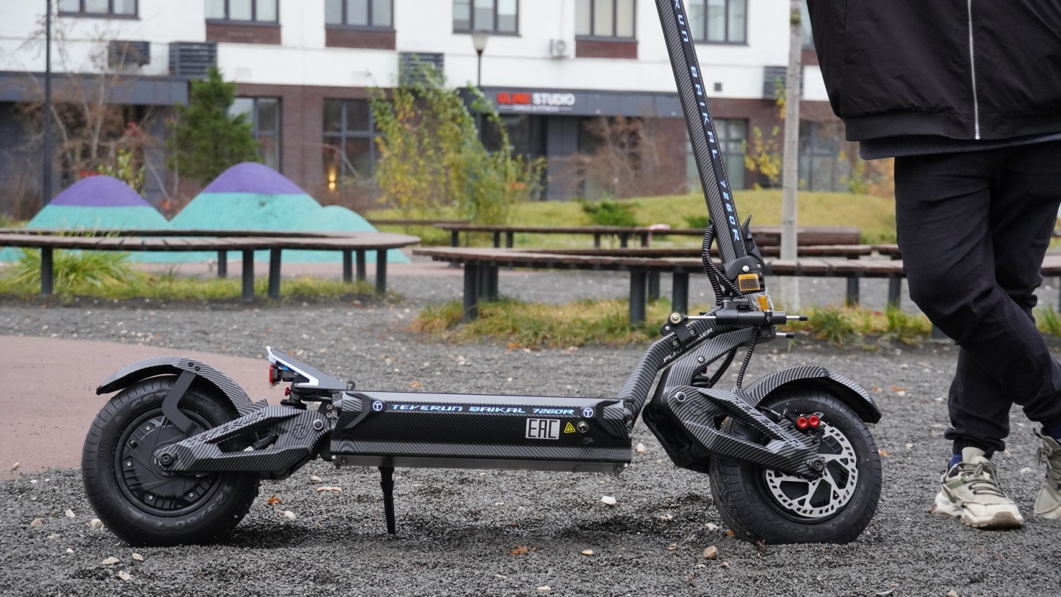 - Тормоза: Гидравлические дисковые тормоза на переднем и заднем колёсах — гарантируют безопасное и эффективное торможение в любых условиях.