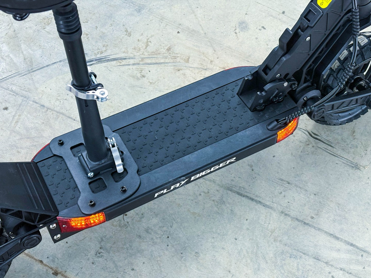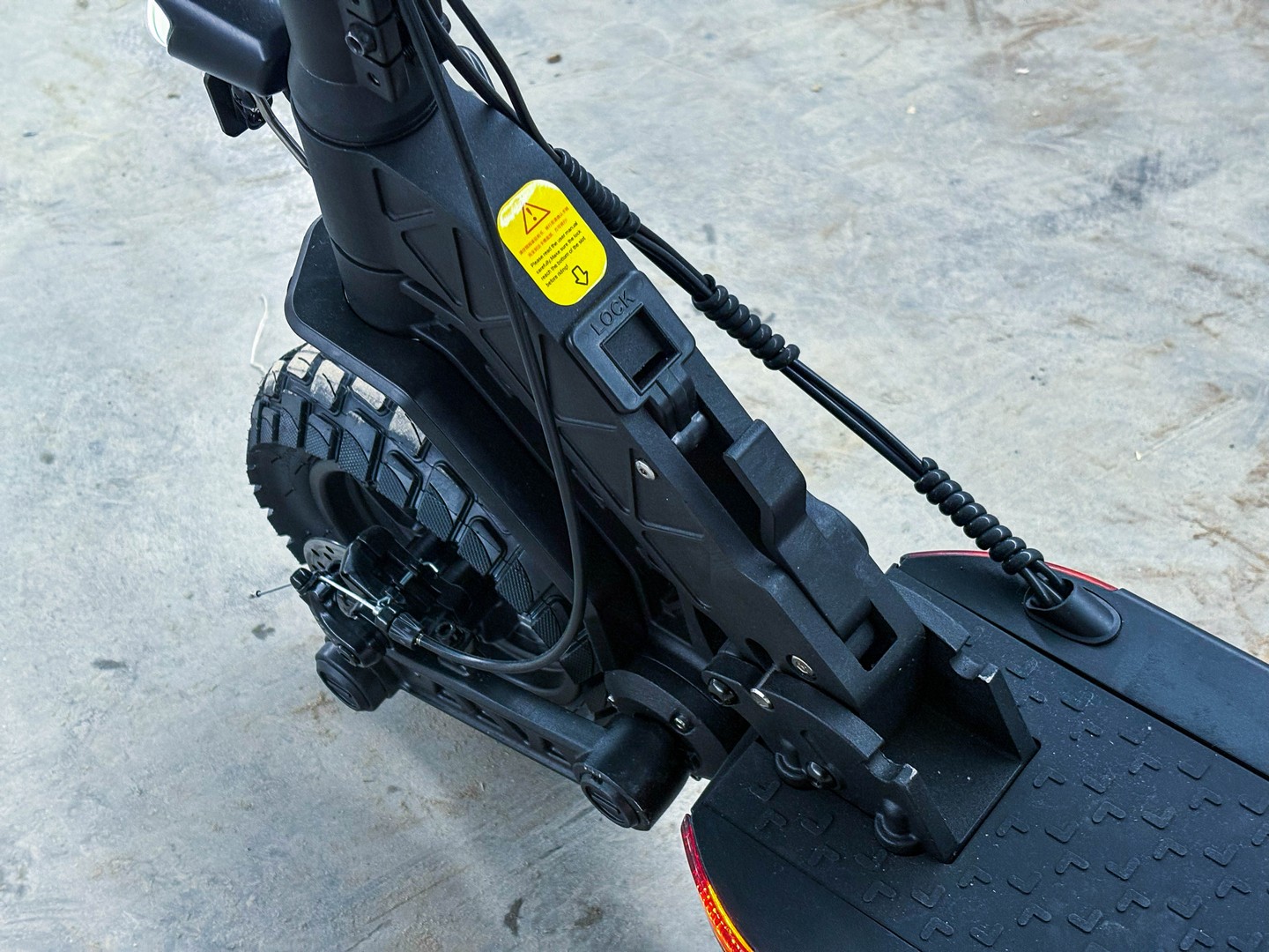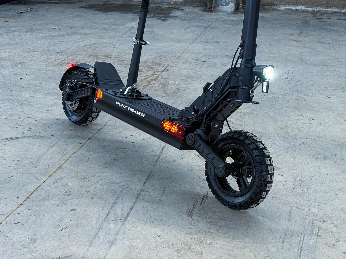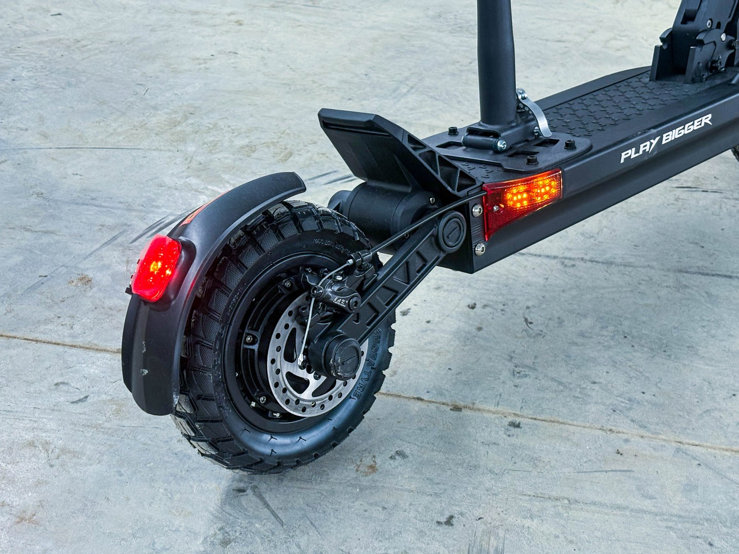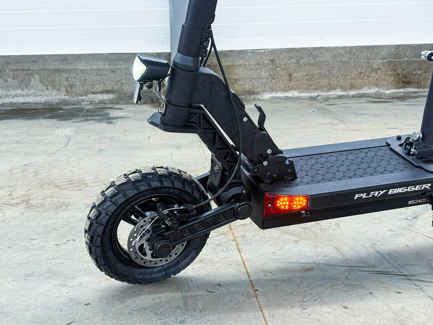 - 10-дюймовые внедорожные колёса с протектором обеспечивают плавную и безопасную поездку вне зависимости от погодных условий