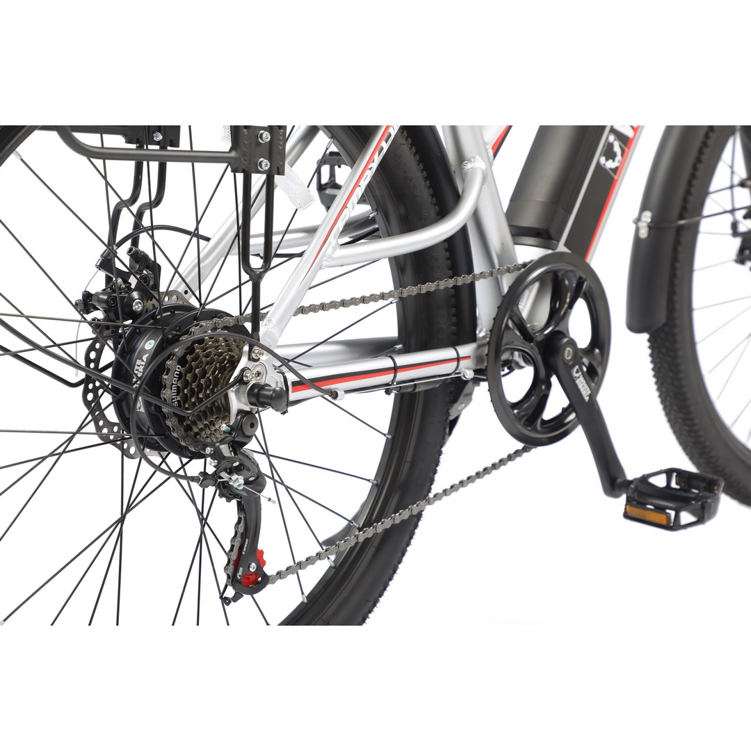Качественное навесное оборудование от фирмы SHIMANO, большой дисплей бортового компьютера с подсветкой, удобный лепесток газа, усиленный металлический багажник - всё это для вашего комфортного передвижения на комфортном и мягком сидении электровелосипеда CAMRY LIGHT 500W.