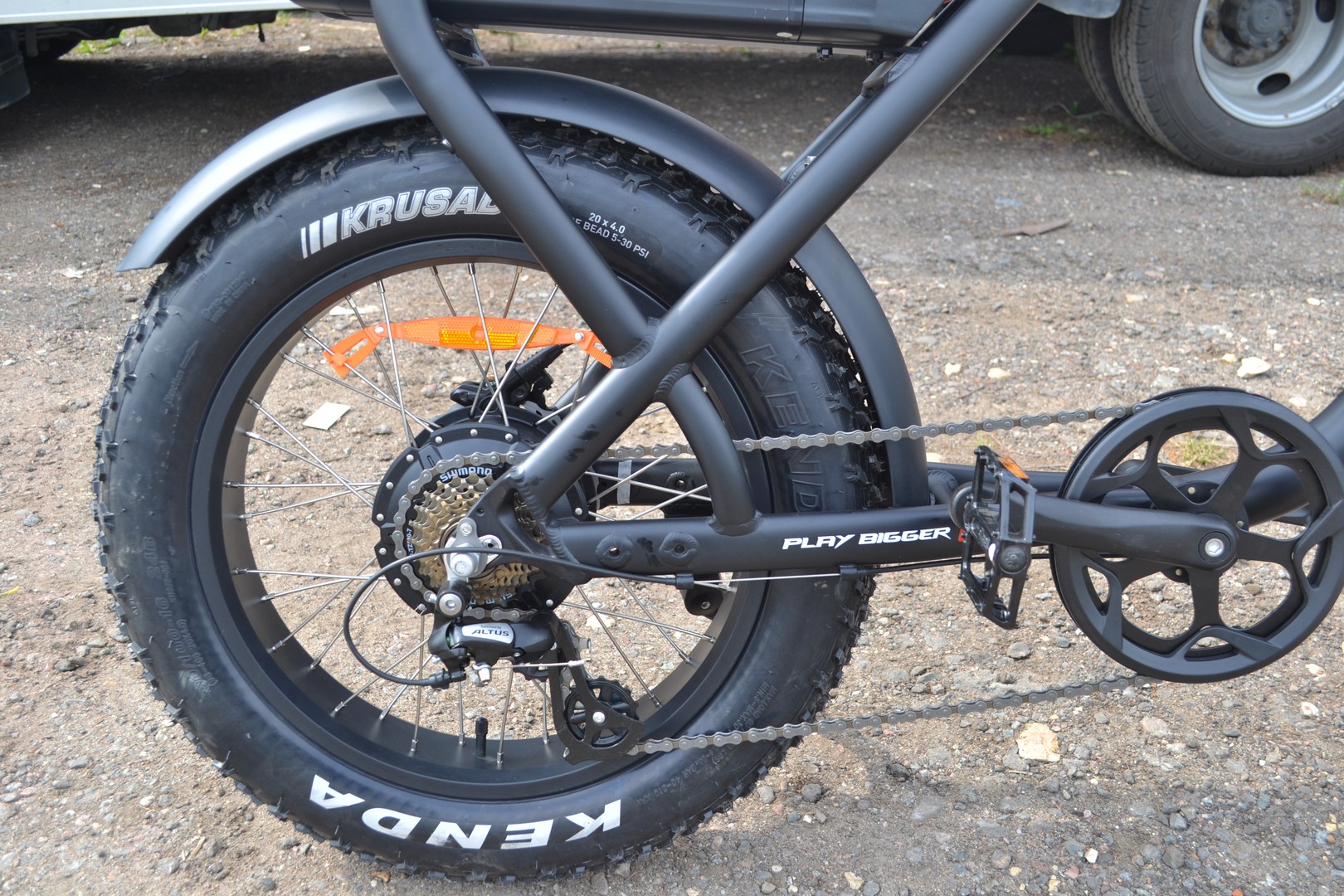 - Колеса: 20-дюймовые шины с крепкими спицами из нержавеющей стали и черными алюминиевыми ободами с отверстиями.