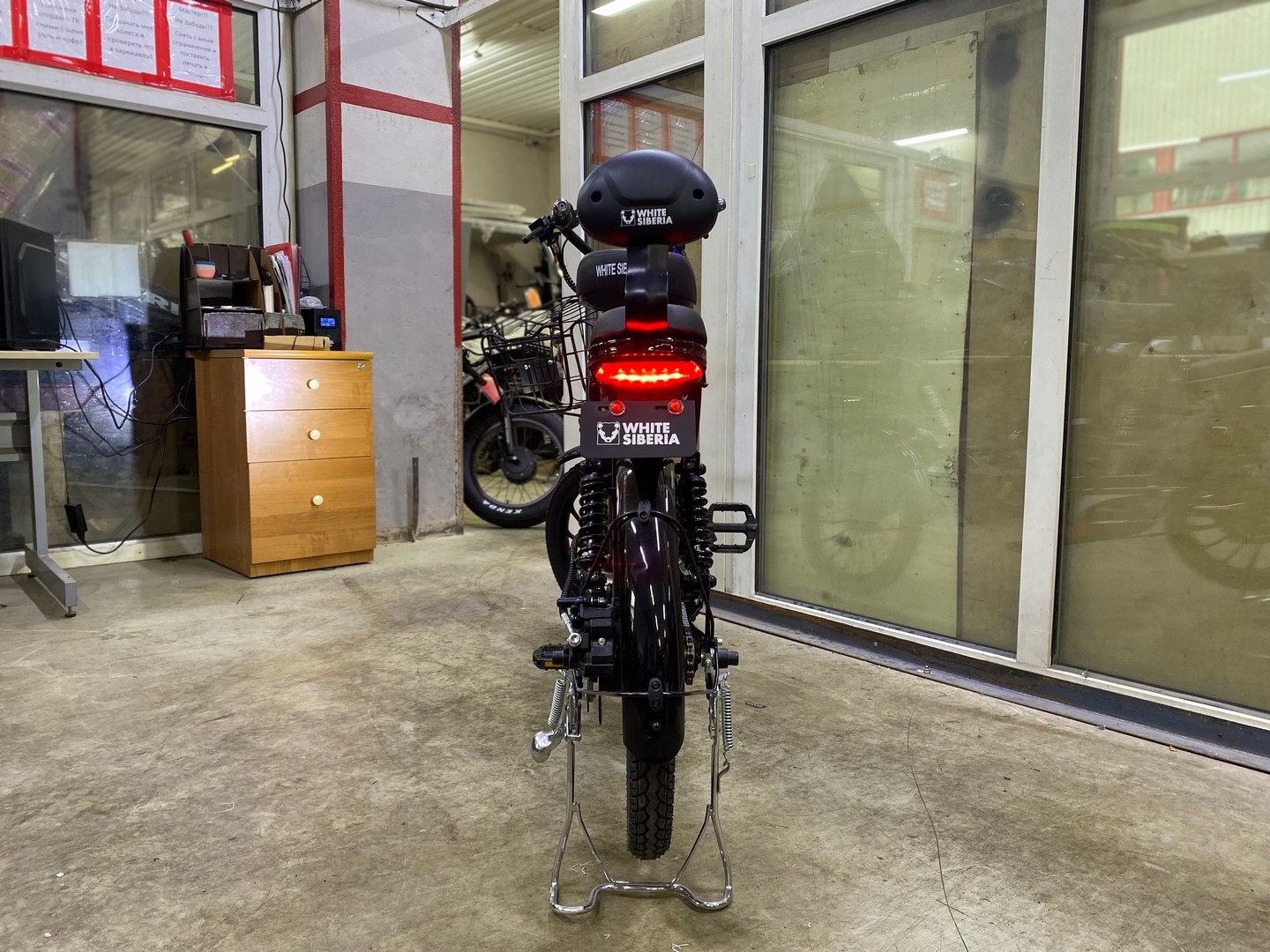 - Сзади можно установить дополнительное сидение со спинкой, либо площадку для крепления бокса доставки