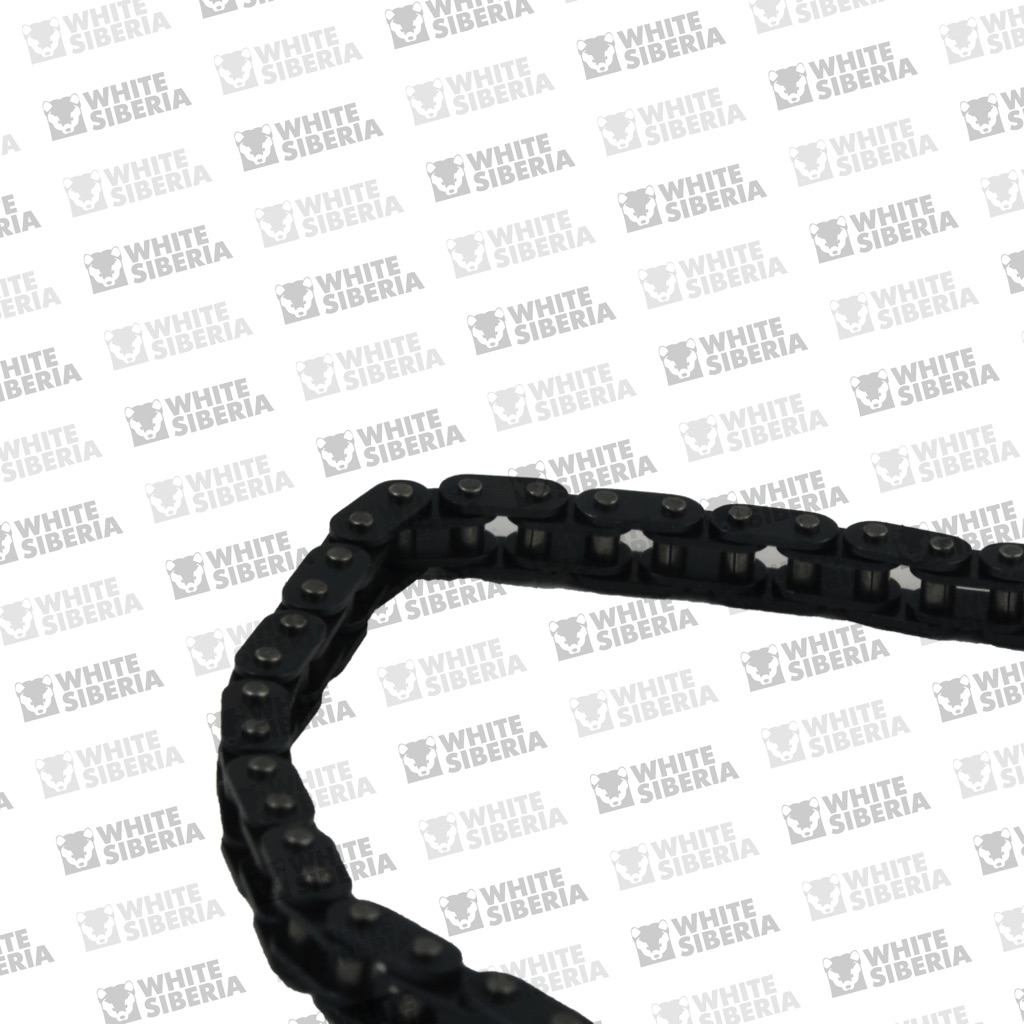 Цепь для детского электромотоцикла WHITE SIBERIA MUXA. Изготовлена из стали. Пины, соединяющие звенья - кованные. Чтобы установить на байк, потребуется выжимка для цепи.
