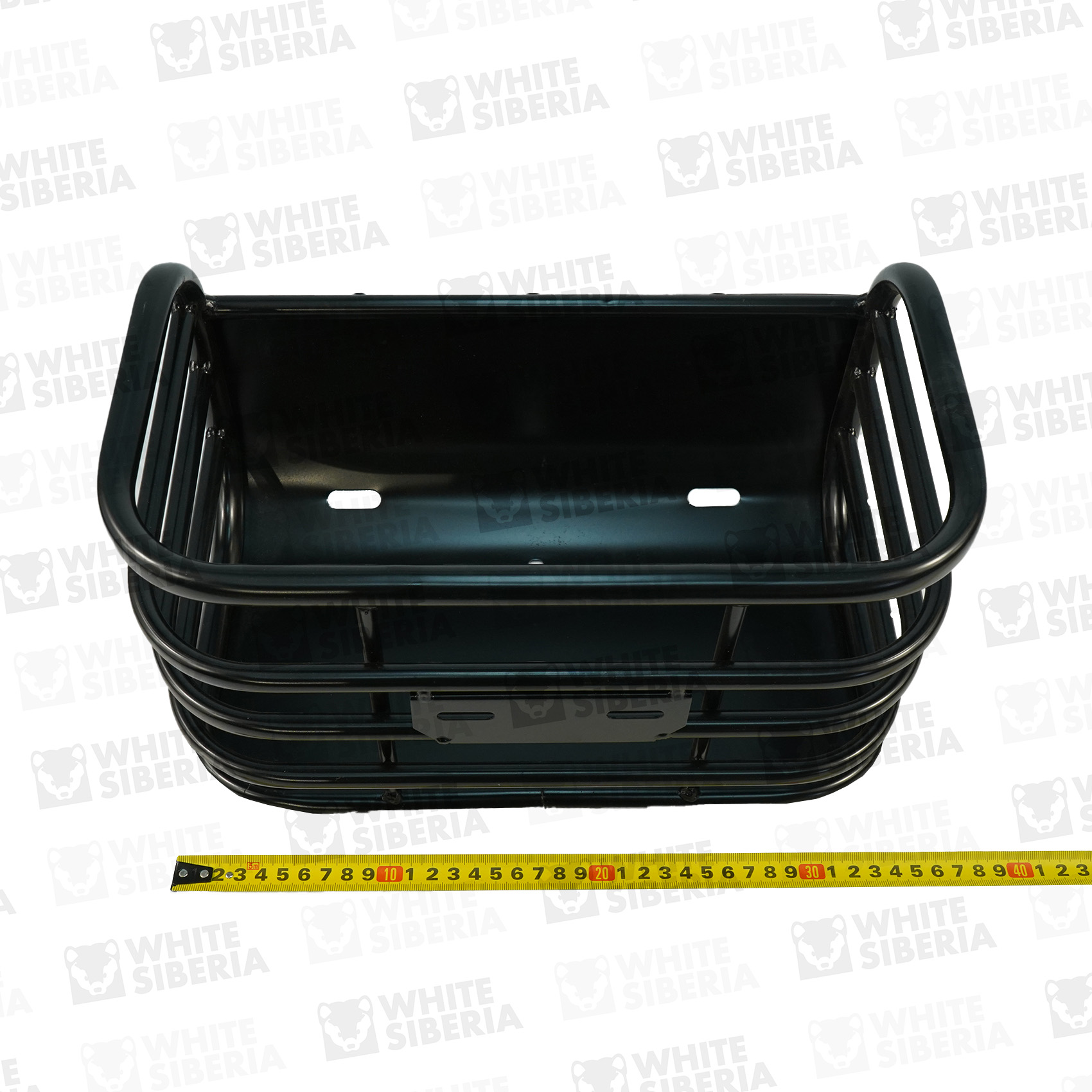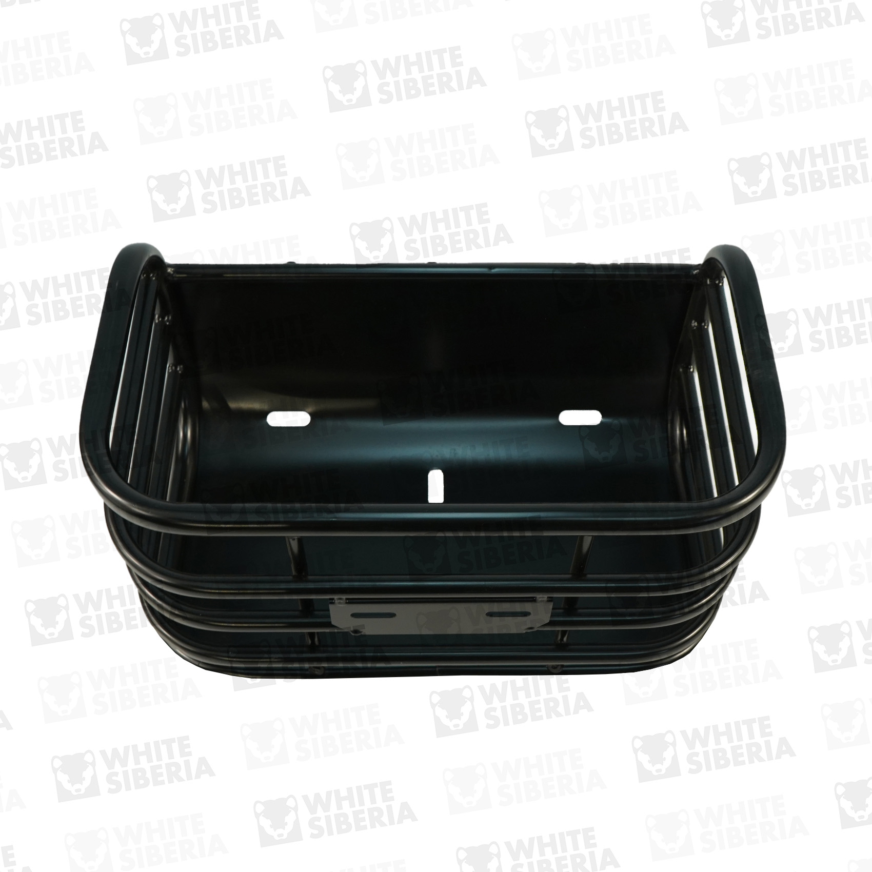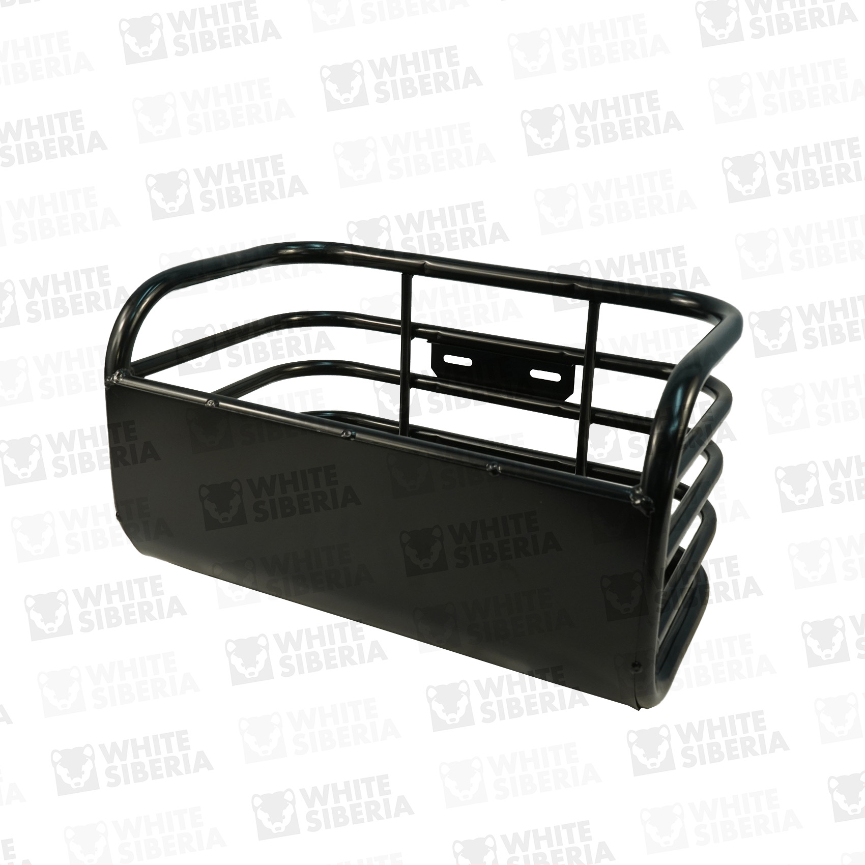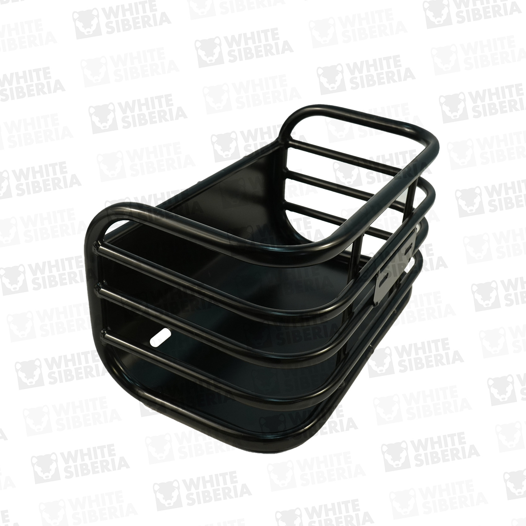 Задняя корзина для электротрицикла WHITE SIBERIA SIBTRIKE L. Устанавливаются на трицикл сзади, между колёс, за сиденьем райдера. Изготовлена из стальных прутьев. Окрашена чёрной порошковой краской. Предназначена для перевозки небольших покупок - например пакета с продуктами.