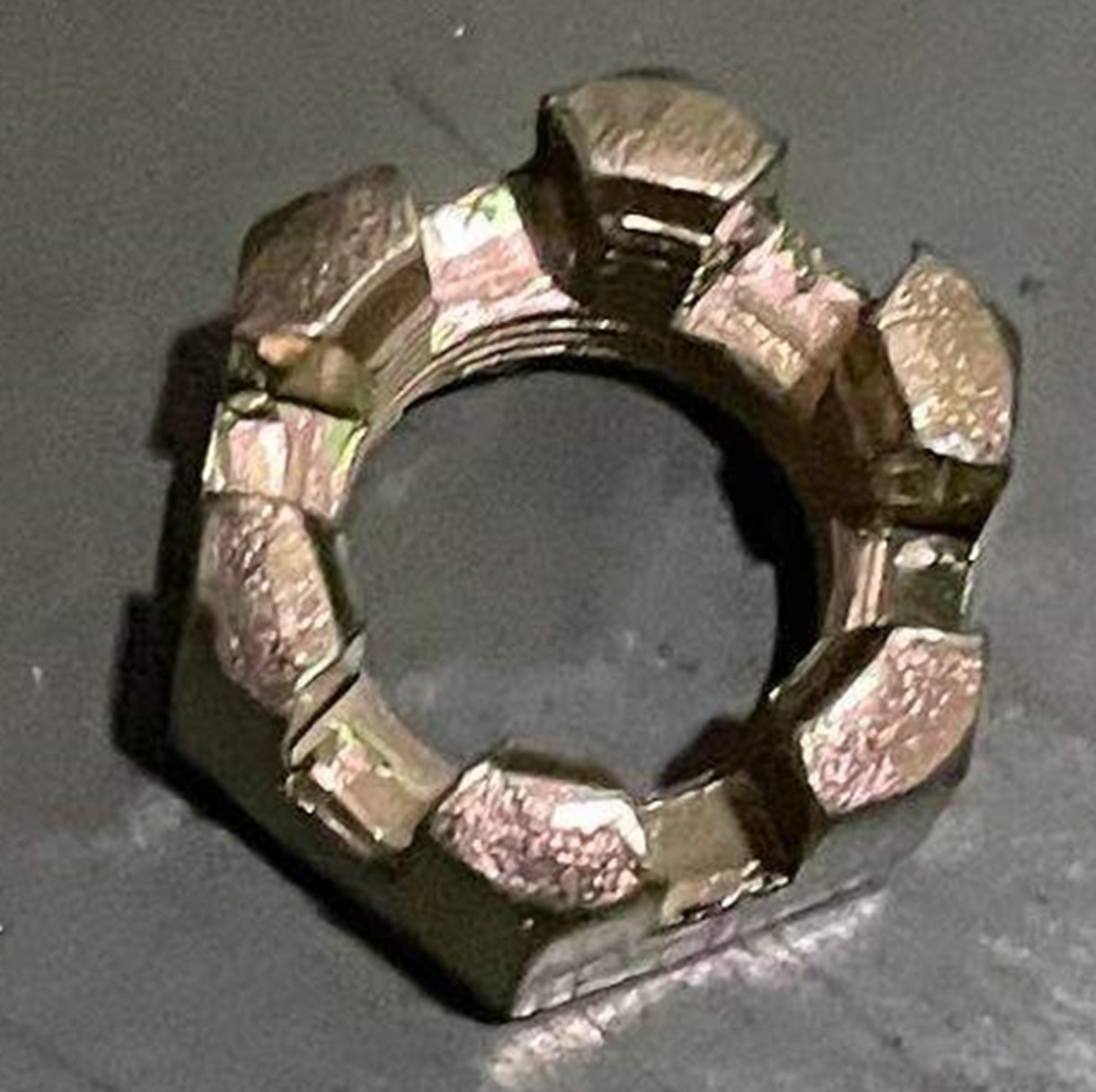 Гайка фиксации колёсного диска на оси. Подходит на электроквадроциклы WHITE SIBERIA SNEG. Изготовлен из латуни. Не подвержен коррозии. Надёжно фиксирует колесо на задней оси, либо передней ступице. Гайка сделана корончатой формы, специально для фиксации шплинтом - колесо точно не открутится!