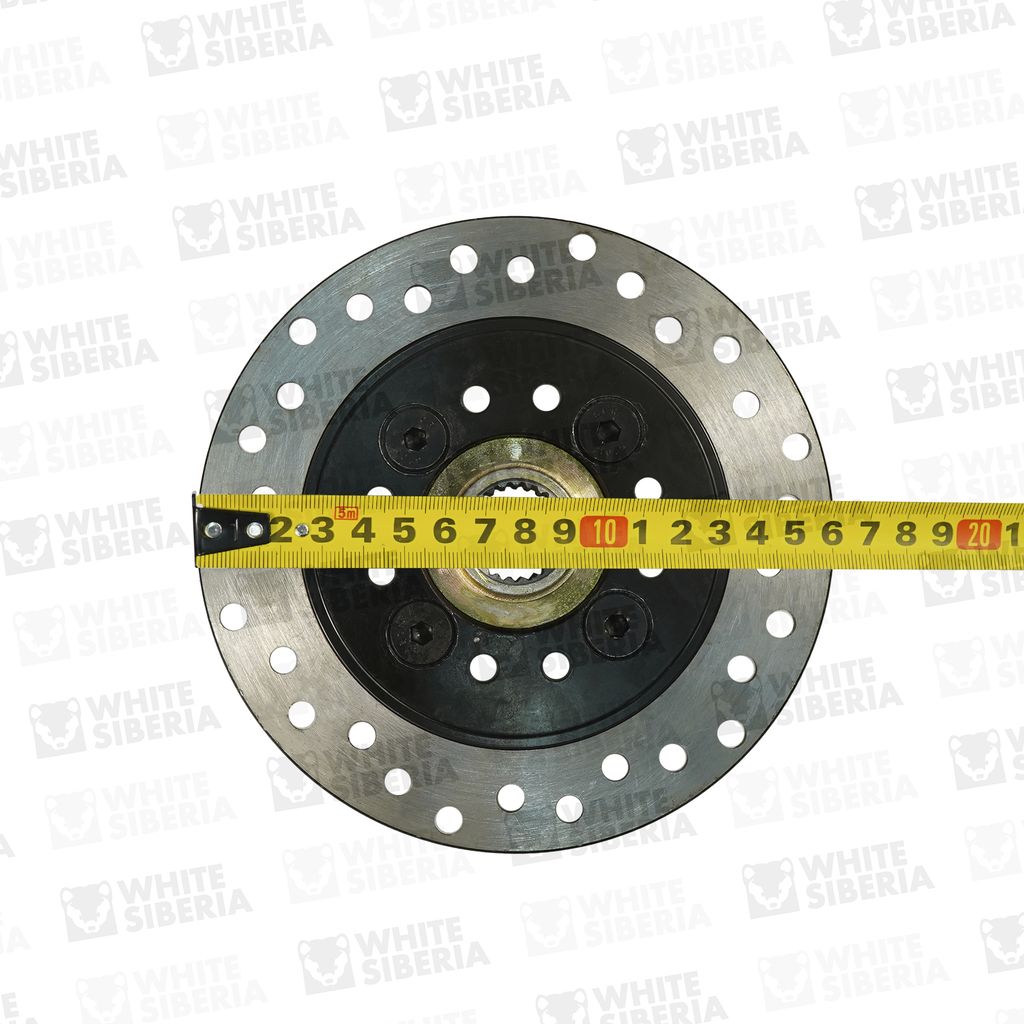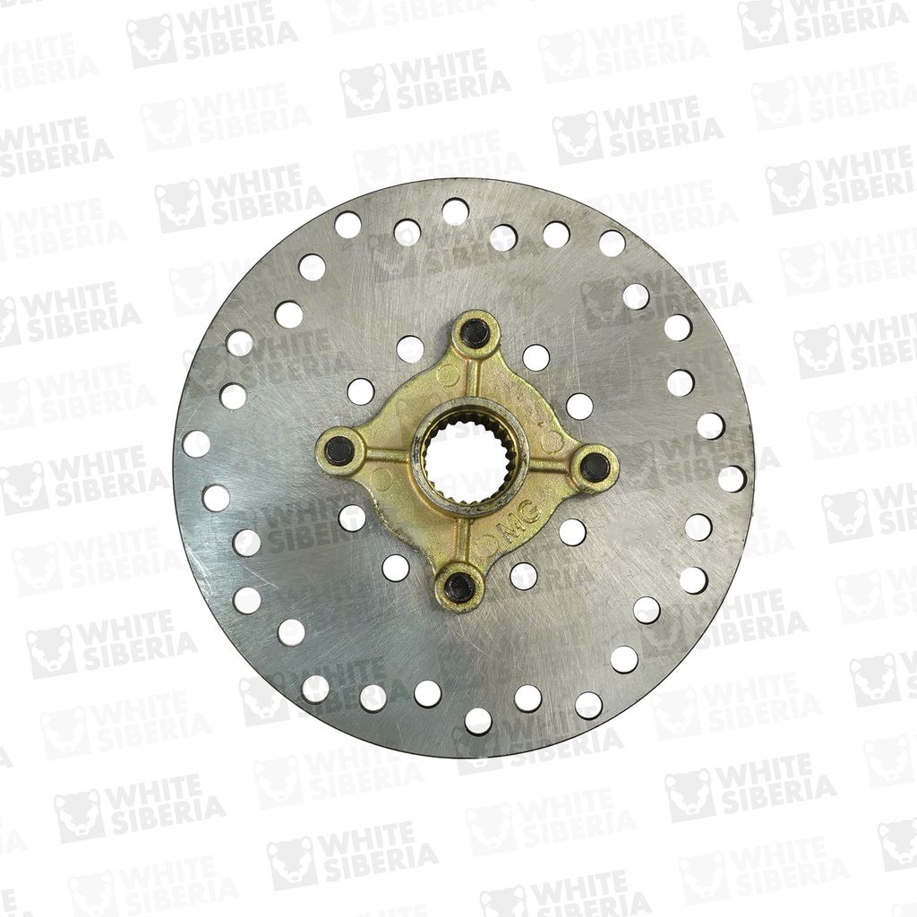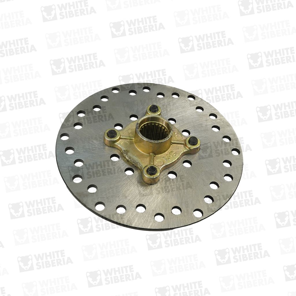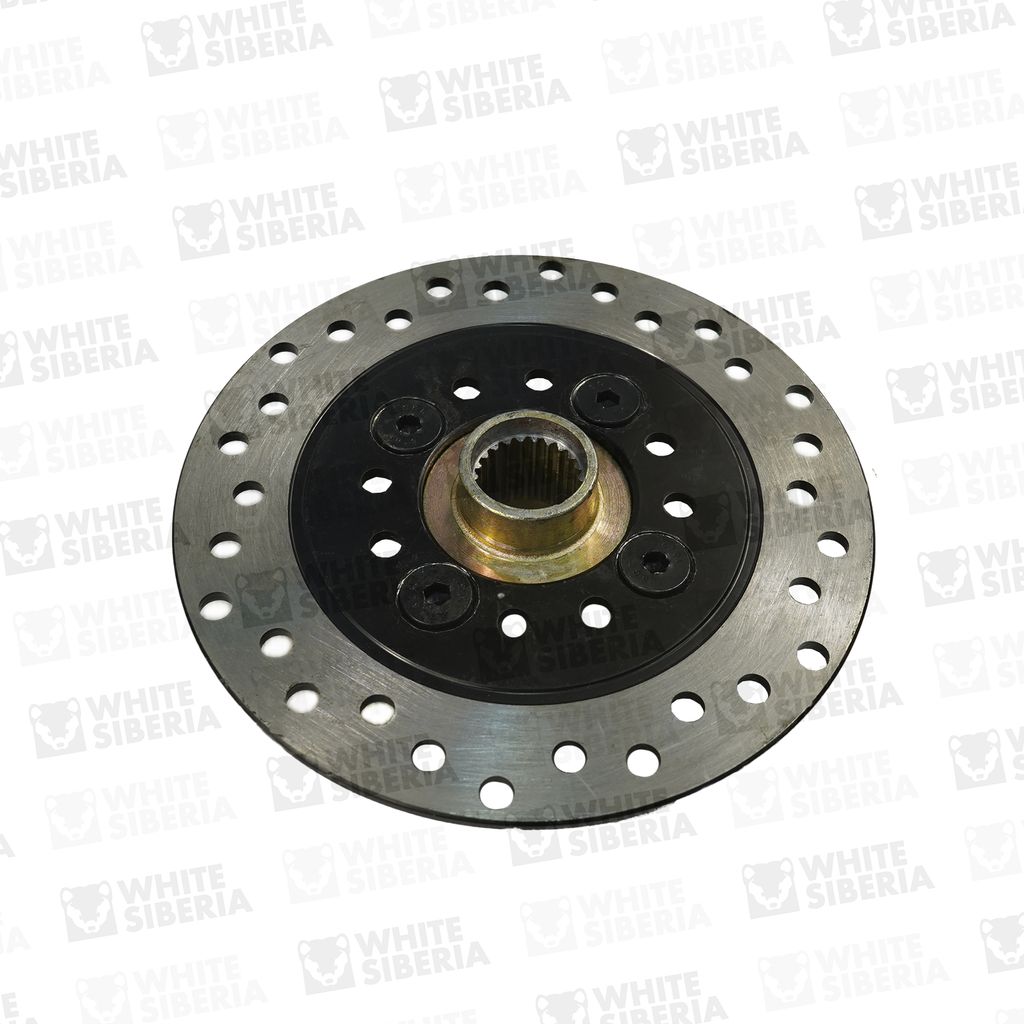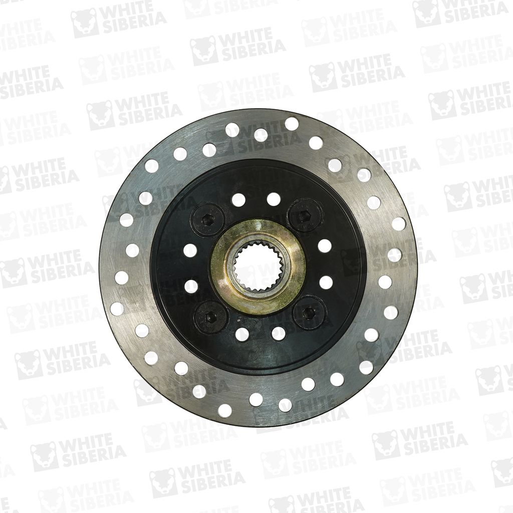 Задний тормозной диск для электроквадроцикла. Подходит на электроквадроцикл WHITE SNEG PRO. Изготовлен из стали. Есть перфорация для отвода пыли, воды и грязи с тормозной поверхности и, лучшего охлаждения. Крепление за шлицы полуоси, дополнительно фиксируется 4 болтами за квадрат полуоси.