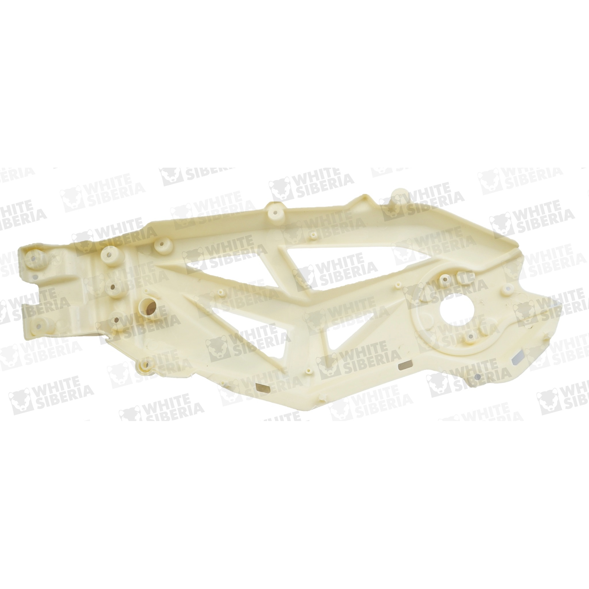 Пластик для защиты агрегатов и батарейного отсека детского электромотоцикла WHITE SIBERIA SOCHI. Изготовлен из ударопрочного пластика белого цвета. Крепится на раму справа. Для законченного внешнего вида, следует установить вместе с защитой чёрной правой (артикул 0319967).