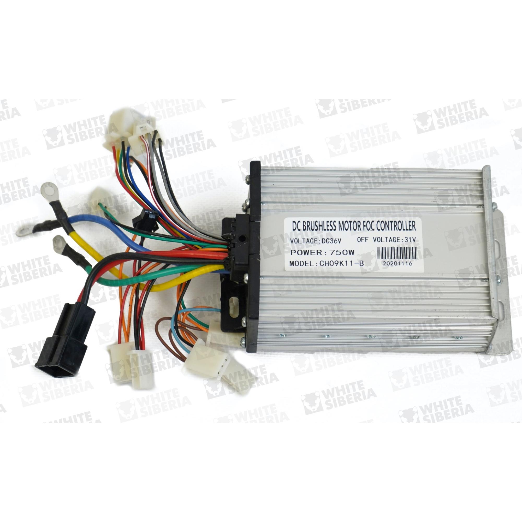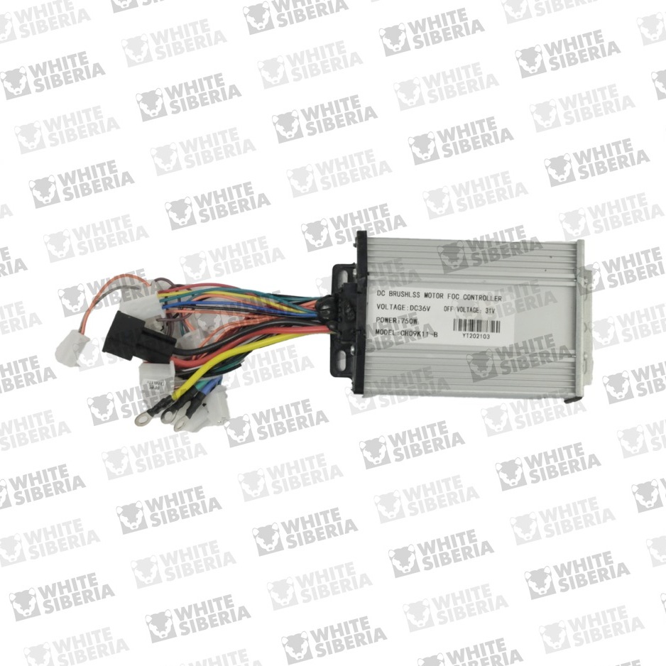Основной контроллер для детского электромотоцикла WHITE SIBERIA SOCHI. Есть защита контроллера от перегрева - при высокой температуре контроллер переходит в режим пониженной мощности. Поддерживает напряжение бортовой сети 36V. Корпус изготовлен из алюминия. Есть разъём для подключения фары.