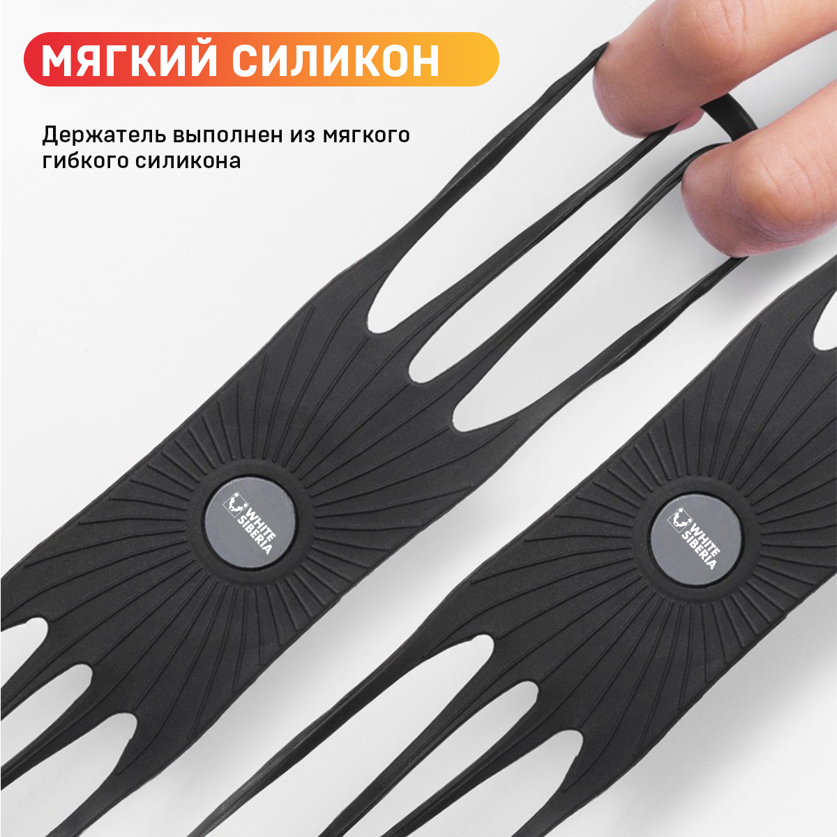 - Материал крепления — силикон — обеспечивает гибкость и долговечность, а также устойчивость к воздействию высоких и низких температур, он не рвется, не теряет форму и не растягивается.