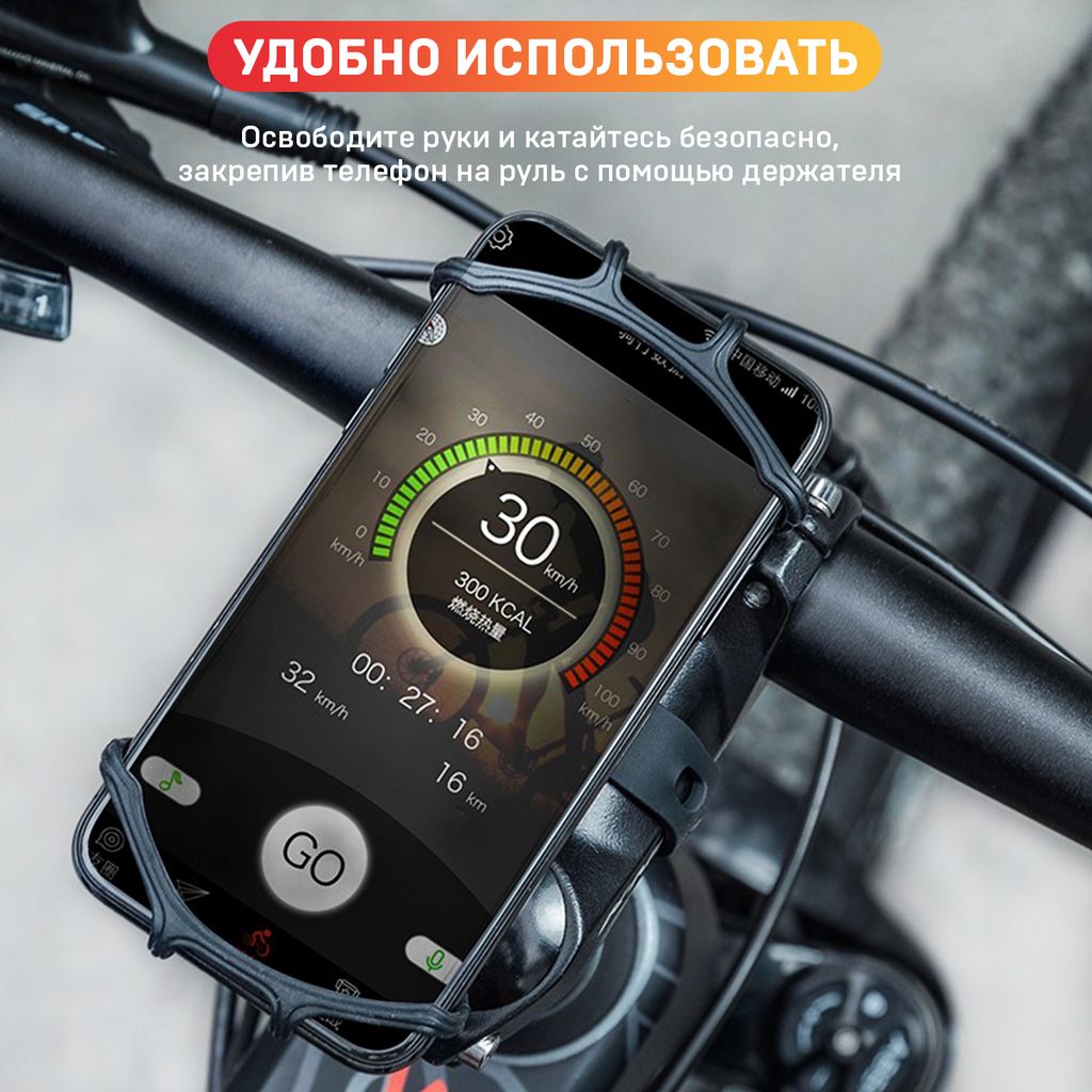 Универсальный держатель для телефона на руль предназначен для эксплуатации на различных транспортных средствах, таких как велосипеды, мото, мотоциклы, скутеры, детские коляски, самокаты, квадроциклы и мопеды. Он также подходит для людей, кто занимается спортом, фэтбайков, горных байков.