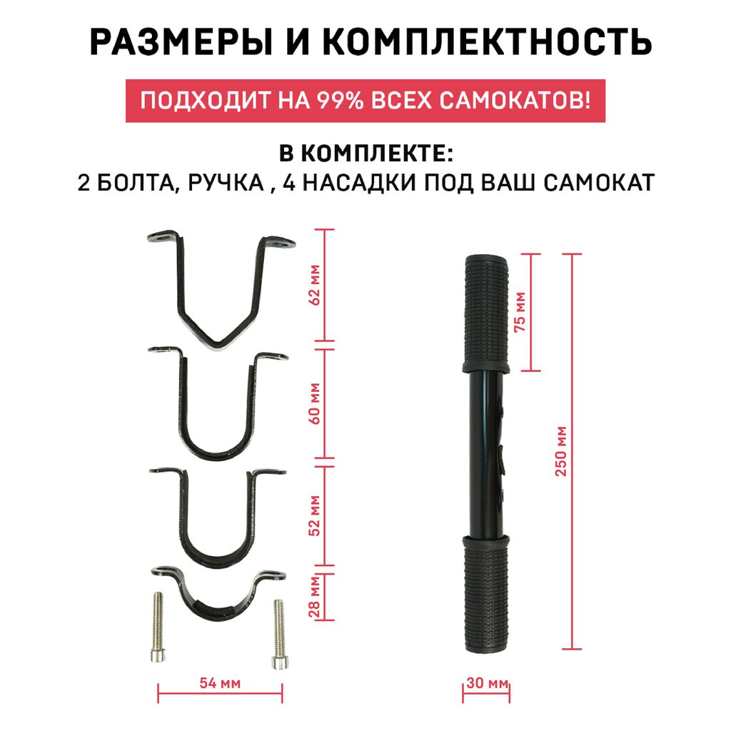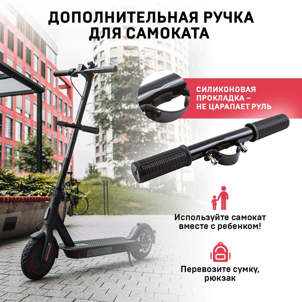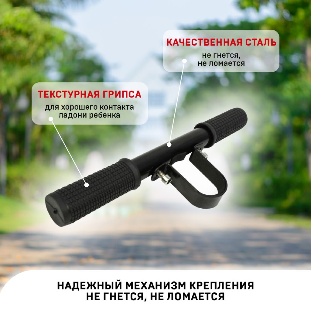 Детская ручка для самоката WS обеспечит ребенку безопасную езду благодаря прочному креплению и удобной форме. Держатель оснащен надежными ручками, с которых не соскальзывает рука при езде. Ручки легко устанавливаются на электросамокат, регулируются под рост ребенка за счет 4 переходников. Изделие черного цвета подойдет для любого самоката и не будет сильно выделяться из общего дизайна. Держатель WS прост в применении и просто необходим для безопасности маленьких пассажиров.Для покупки товара в нашем интернет-магазине выберите понравившийся товар и добавьте его в корзину. Далее перейдите в Корзину и нажмите на «Оформить заказ» или «Быстрый заказ».